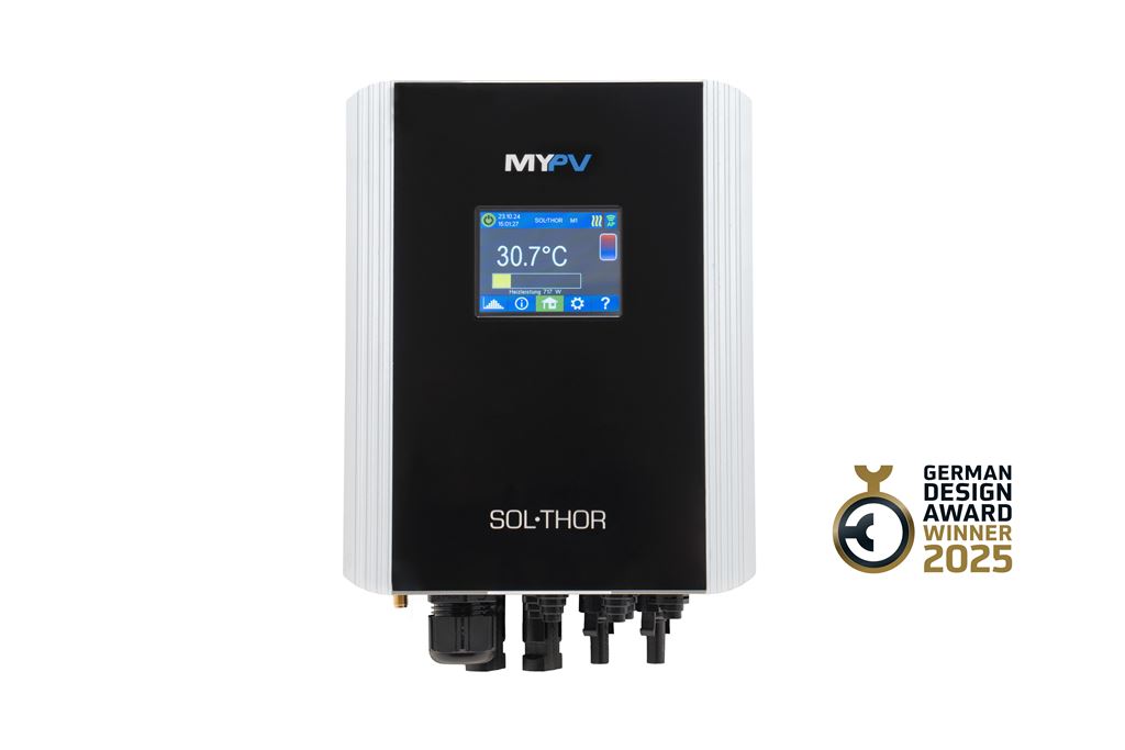 Der Photovoltaikwärmeexperte my-PV hat den Einsatz seines neuen DC Power-Managers SOL•THOR mit 2 bis 3 Photovoltaikmodulen simuliert. Das Ergebnis: Mit dem Steuergerät kann ein Zwei-Personen-Haushalt bereits mit drei Solarmodulen zwischen 34 bis 50 % seines Warmwasserbedarfs im Jahr decken. Für die autarke Lösung erhält my-PV den German Design Award 2025.