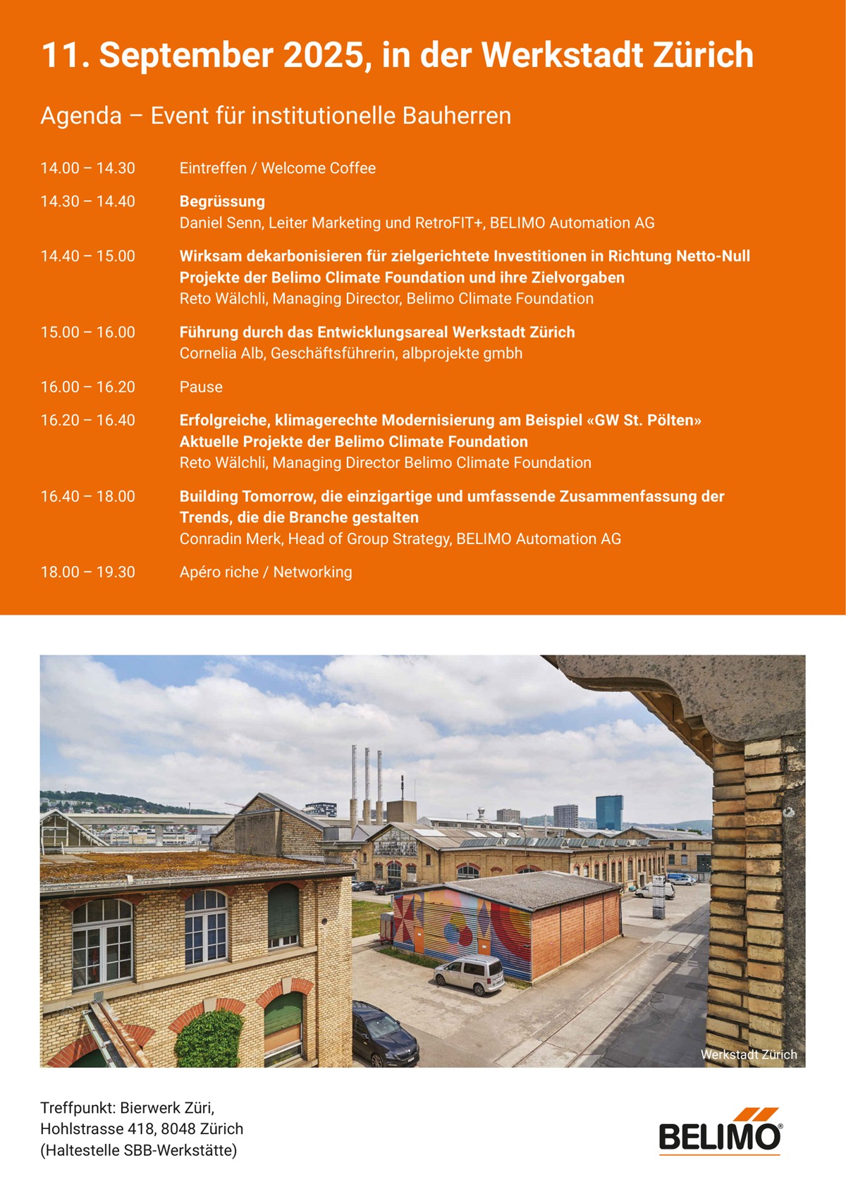 Das Eventprogramm bietet neben spannenden Fachreferaten auch eine exklusive Führung durch die Werkstadt Zürich – ein Areal im Wandel, das auf rund 42’000 Quadratmetern Raum für Innovation, Kultur und urbane Entwicklung schafft.
