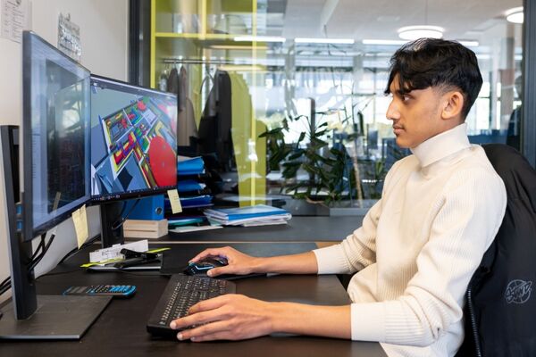 Der 18-jährige Rishiyanth Sabaratnam zeichnet gerne am Computer, und zwar technisch. In seiner Lehre zum Gebäudetechnikplaner EFZ lernt er, Lüftungen zu planen, die energieeffizient sind. Die Teamarbeit ist dabei zentral. Bei eicher+pauli in Bern wird er optimal für eine gelingende Kommunikation zwischen Fachkräften geschult.