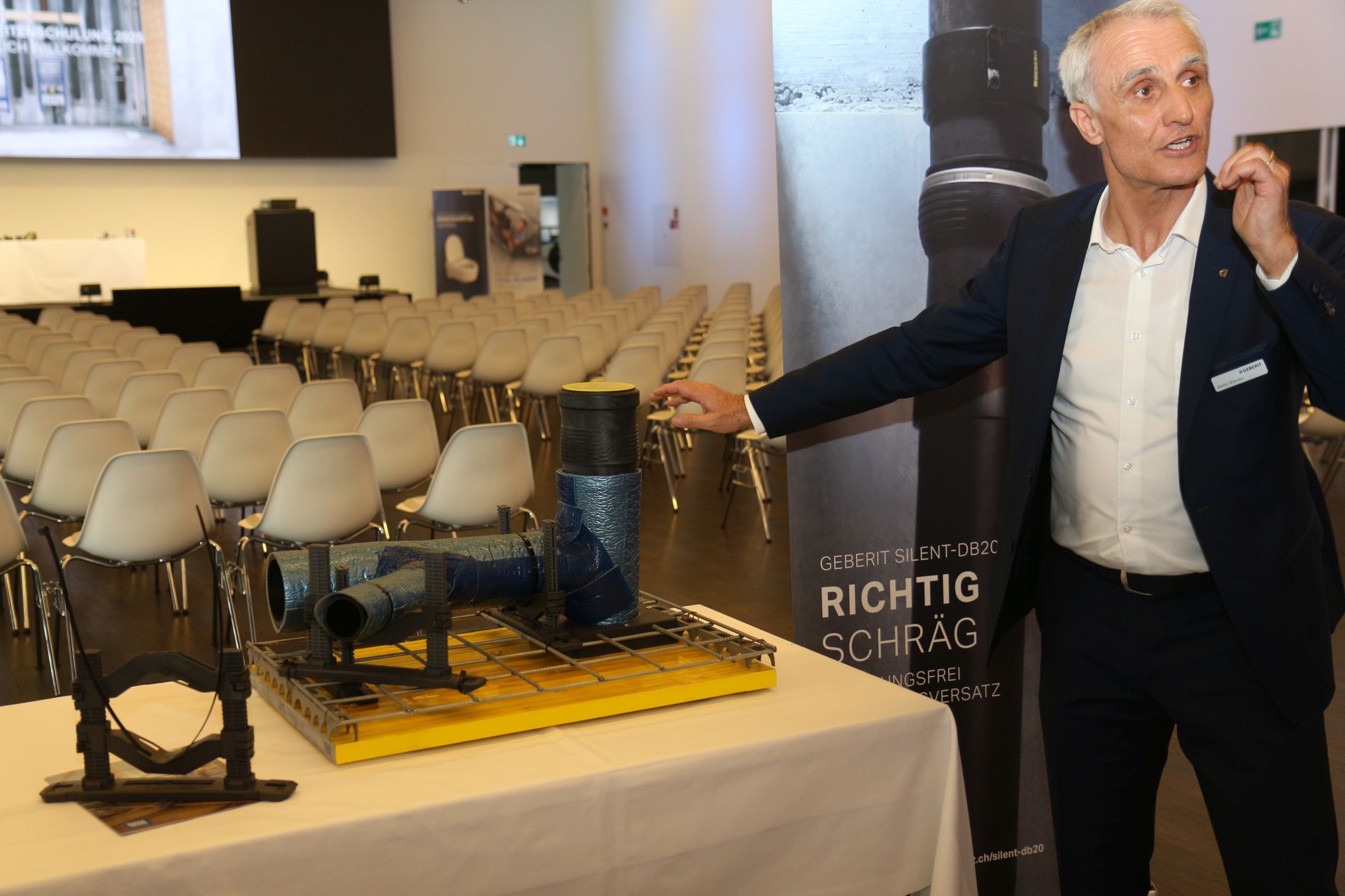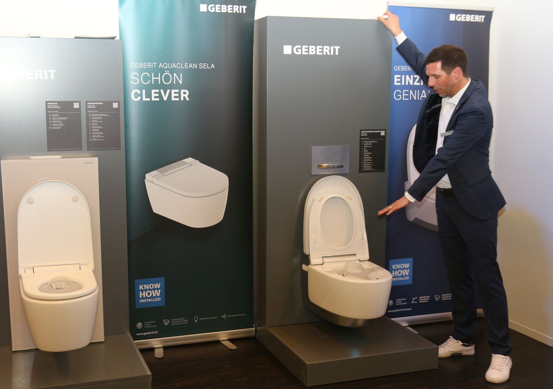 Walter Brändle, langjähriger Leiter Technischer Beratungsdienst Schweiz bei Geberit, präsentierte anhand der ausgestellten Objekte die neu entwickelten Zusatzfunktionen typischer Produkte aus der Geberit-Welt mit Elan und Liebe zum Detail. Nachfolgend einige Schlaglichter auf ausgewählte Neuheiten.