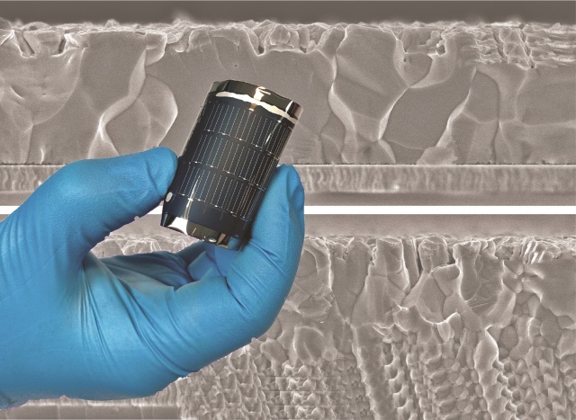 Die flexiblen Solarzellen werden auf einer Polymerfolie verarbeitet mit Cu(In,Ga)Se2 als lichtabsorbierende Halbleiterschicht, die durch ein Niedrigtemperatur-Co-Verdampfungsverfahren abgeschieden wird. Der Empa-Wissenschaftler Shiro Nishiwaki veränderte die Zusammensetzung der Schicht, um die Leistung und die Ausgangsspannung der Zellen zu verbessern. «Zwei unterschiedliche Ansätze zur Legierung des Kristalls führten zu einer ähnlichen Verbesserung in der Leistung des Bauelements», sagt Romain Carron. Daher lassen sich die Ergebnisse auf unterschiedliche Weise, aber mit gleichwertigen Ergebnissen auf einen industriellen Massstab übertragen. Der Wirkungsgrad der Solarzelle von 22,2% wurde unabhängig am Fraunhofer-Institut für Solare Energiesysteme ISE in Freiburg bestätigt.