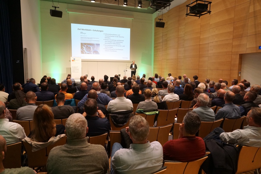Auf die Thematik der natürlichen Kältemittel ging Robert Diana von Suissetec ein. Diese kommen aufgrund des schrittweisen Verbotes von fluorierten Kältemitteln in der EU zukünftig breit zum Einsatz. Viele von diesen sind jedoch brennbar und/oder toxisch und stellen Planungs- und Installationsunternehmen entsprechend vor neue Herausforderungen. Mehrere Organisationen haben deshalb unter der Federführung von Robert Diana gemeinsam das Merkblatt «Umgang mit Wärmepumpen und Kälteanlagen mit gering toxischen, brennbaren Kältemitteln» erarbeitet. Damit sollen Informationslücken geschlossen und ein sicherer Aufbau und Betrieb von entsprechenden Anlagen ohne Personen- und Sachschäden gewährleistet werden. Das Merkblatt wird noch dieses Jahr veröffentlicht. Ab 2025 sind zudem Schulungen für Installateure und Planer geplant.