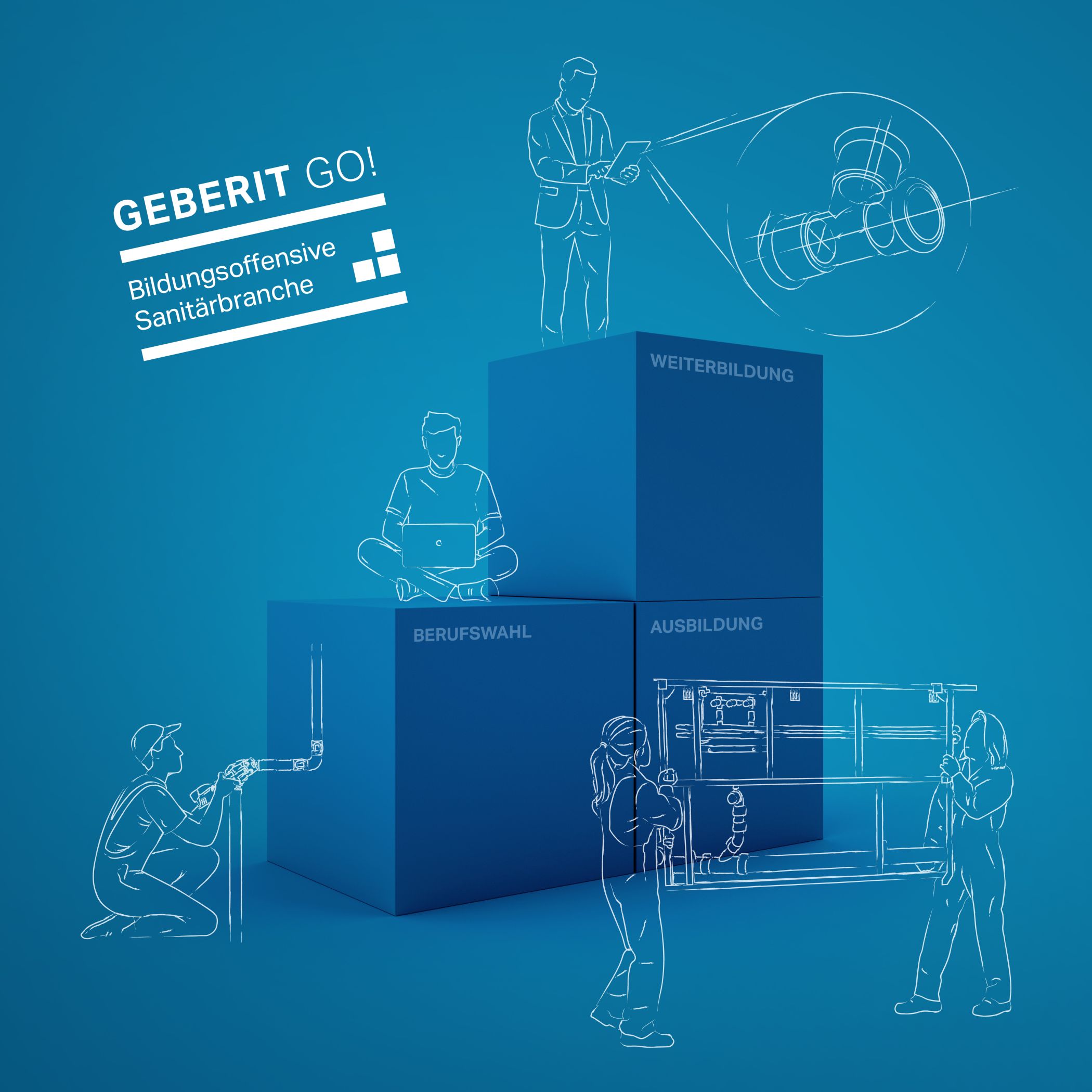 Die «Geberit Go!» Bildungsoffensive fördert und unterstützt die Sanitärbranche in der Zeitspanne von der Berufswahl bis zum Abschluss der Weiterbildung. (Bild: Geberit Vertriebs AG)