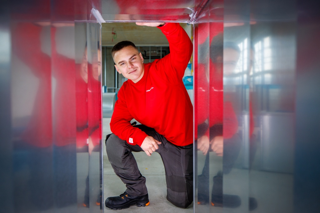 Janik Meier ist mit Leib und Seele Lüftungsanlagenbauer. Er sorgt mit seiner Arbeit für eine gute und hygienische Raumluft. Im August 2022 schloss er seine Lehre ab und ist heute auf vielen unterschiedlichen Baustellen unterwegs, um Lüftungs- und Klimaanlagen öffentlicher und privater Gebäude zu montieren und in Betrieb zu nehmen.