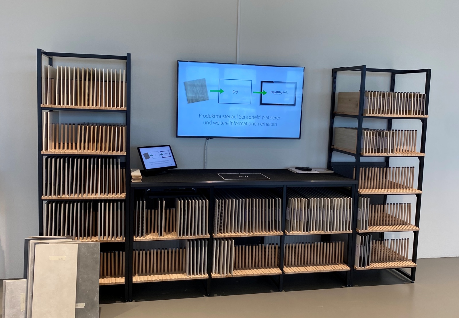 Einzigartig in der Schweiz ist der in Solothurn erstmalig installierte «Tileconfigurator». Damit lassen sich eine grosse Anzahl – auf der Rückseite mit einem QR-Code versehenen – Platten im Handumdrehen über einen Monitor in einem realitätsgetreuen Raum visualisieren sowie über einen Touchscreen weitere Formate oder Farben in verschiedenen Verlegearten darstellen. Auch die Fugenfarbe– ein nicht zu unterschätzender Einfluss auf das Raumbild – kann einfach und intuitiv ausgewählt werden.