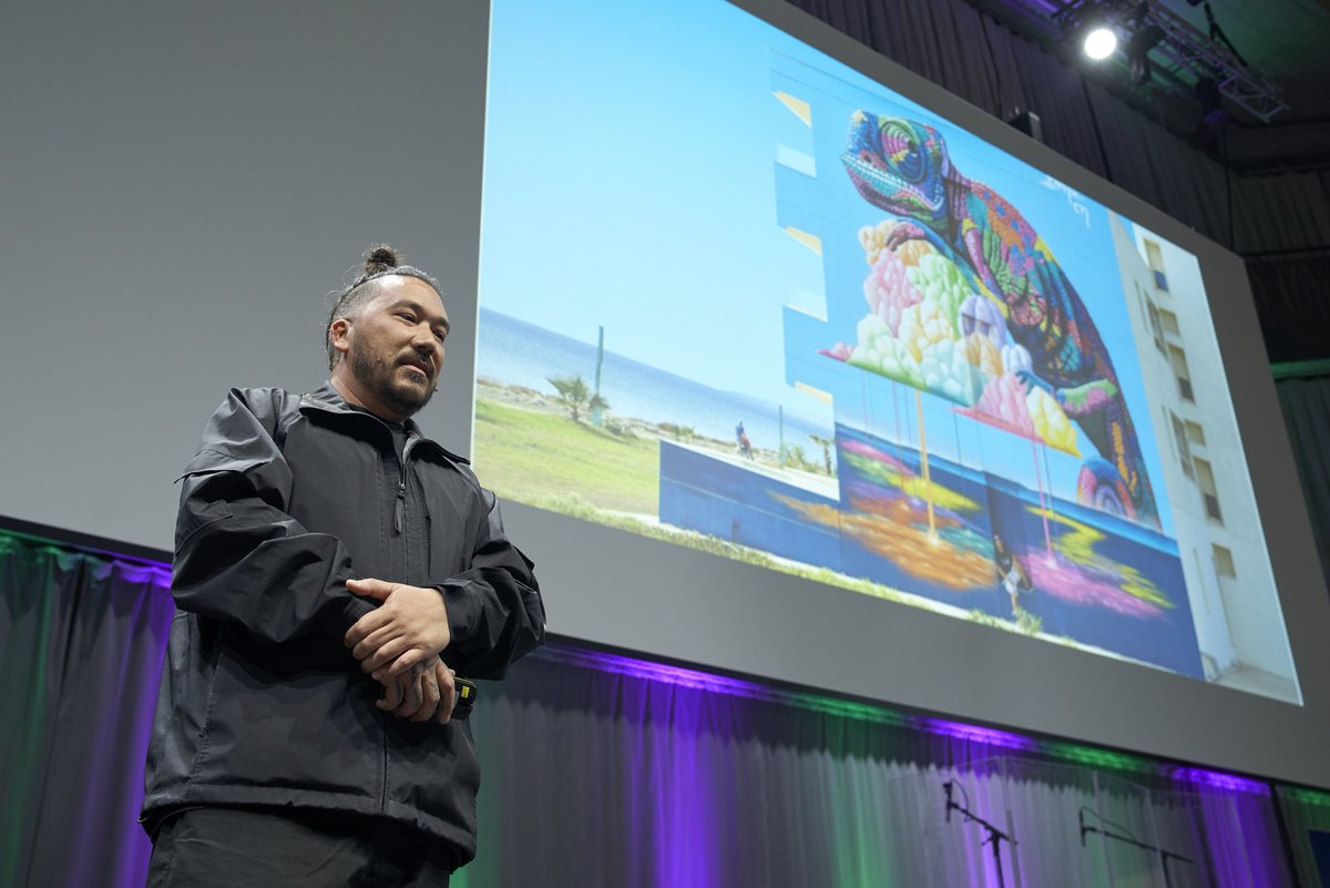 Der Bündner Künstler Fabian «BANE» Florin entführte die Teilnehmenden in die Welt der Urban Art und zeigte, wie diese unsere Umgebung zur Galerie macht. Der 1982 in Chur geborene «BANE» erzählte von seinem Weg durch schwierige Zeiten, die ihn gleichzeitig zu neuen Inspirationsquellen führten.