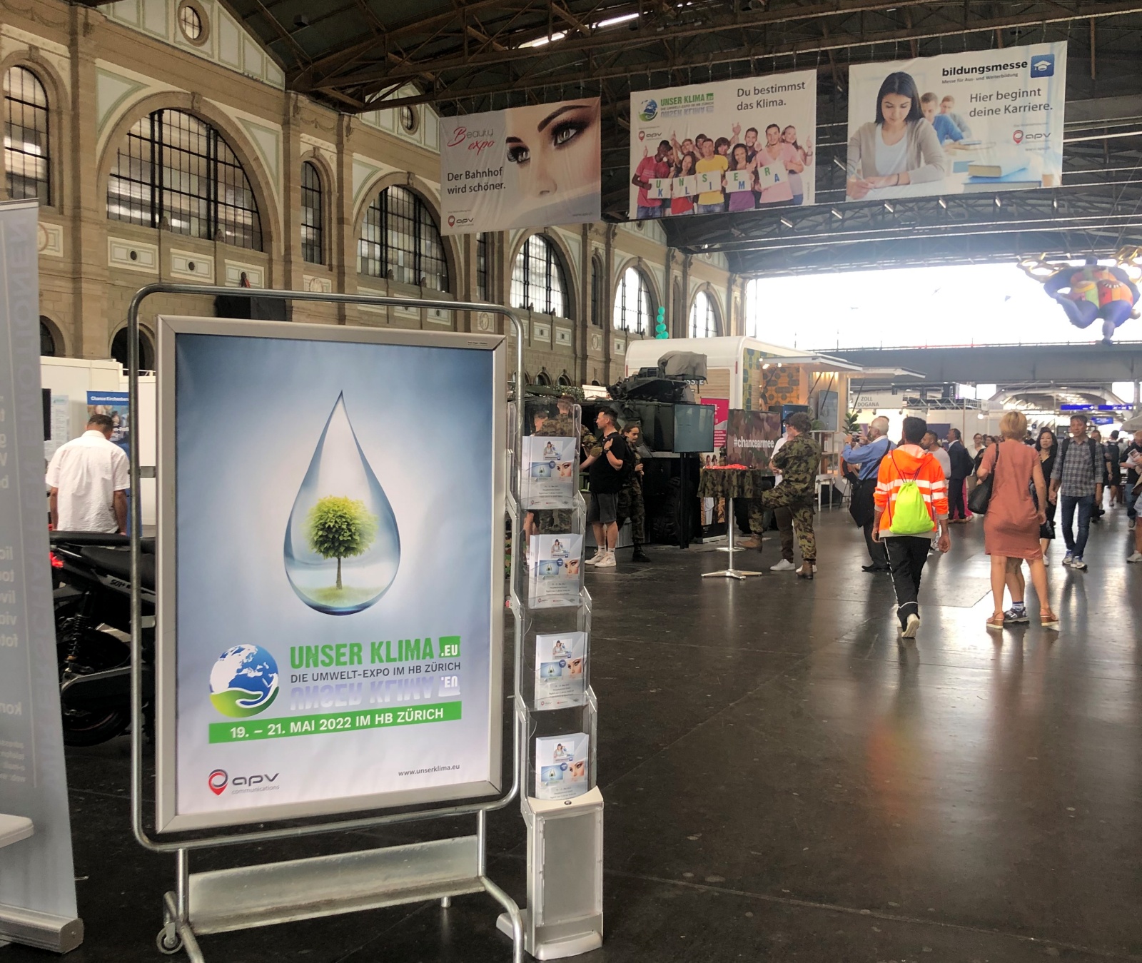 Nach der erfolgreichen Erstveranstaltung im letzten Jahr, findet die Publikumsmesse «Unser Klima» zum zweiten Mal vom 11. – 13. Mai 2023 im HB Zürich statt. An der dreitägigen Umwelt-Expo präsentieren Unternehmen und Organisationen ihre Anstrengungen und Beiträge zum Klimaschutz und zur Nachhaltigkeit.